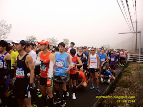 Finally found the actual starting point. But the weather got worse and became very foggy and I began to feel a bit chilly. At 12.00 noon sharp, the gun went off and we slowly moved (for about 5 minutes) before we can run at our planned pace.